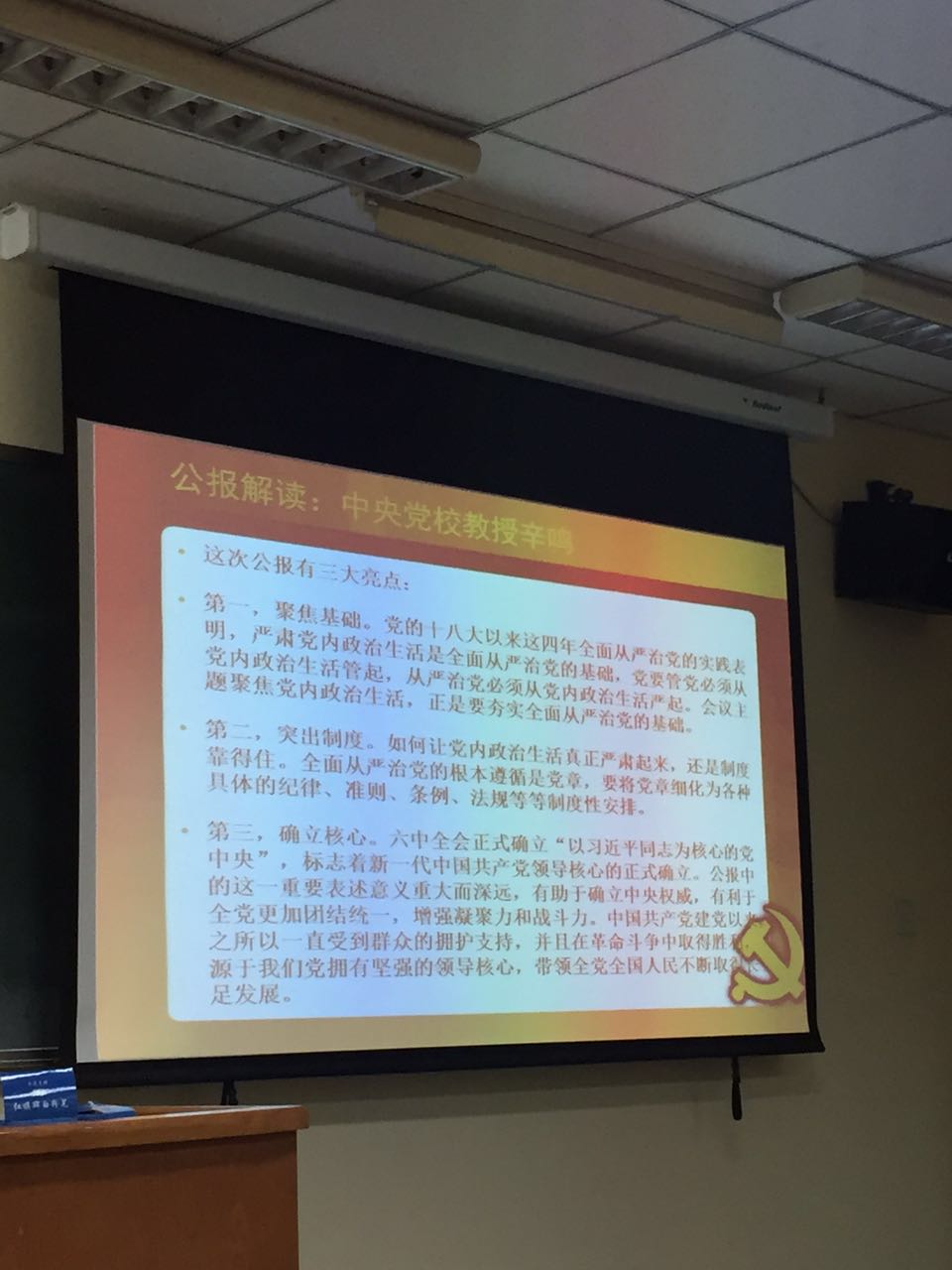 为促进党团员进一步学习党团知识,保持党员团员先进性,加强大学生思想政治教育,在党的十八届六中全会顺利召开,以及长征胜利80周年之际,beat365中国官网于2016年11月22日晚七点,在逸夫楼305教室举办了十八届六中全会精神暨长征精神学习会。