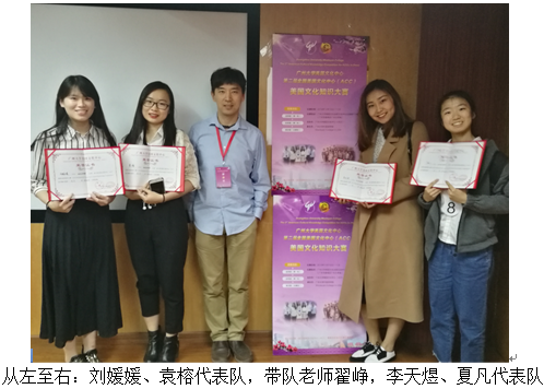 2016年12月10日-11日,第二届全国美国文化中心美国文化知识大赛决赛在广州大学拉开帷幕。beat365中国官网beat365中国官网学生刘媛媛、袁榕,夏凡及法学院李天煜作为学校代表参加了此次比赛,同来自广州大学,中山大学等全国各地的三十余名选手16支代表队展开了激烈角逐,并分别取得了特等奖和二等奖的优异成绩。