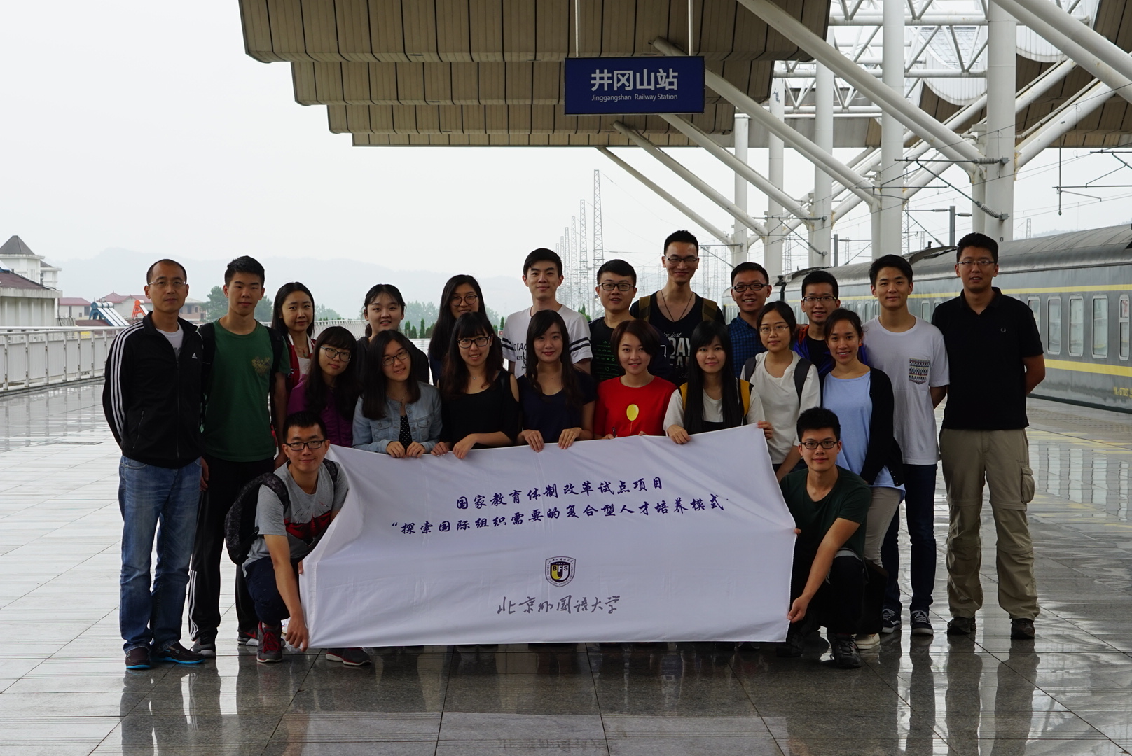 “探索国际组织需要的复合型人才培养模式”项目着眼于国家人才发展战略,培养符合国际组织要求,熟悉并擅于运用国际规则,具有突出的跨文化沟通能力,掌握多种语言技能及跨学科知识,政治素质过硬,热爱祖国和人民的复语、复合型高端外语人才。为深化项目班同学对共产党红色革命历史的了解、深入基层群众、落实“两学一做”的要求、升华中国情怀,beat365中国官网国际组织项目党支部举办了此次“井冈山精神教育,理想信念教育”的党建实践活动。