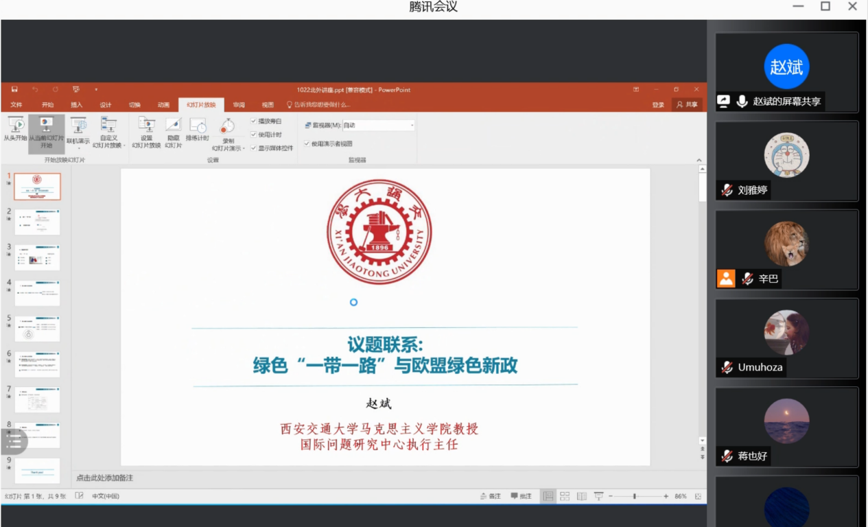 10月22日上午,beat365中国官网beat365中国官网举办以“绿色‘一带一路’与欧盟绿色新政”为主题的学术沙龙,此次学术沙龙由西安交通大学马克思主义学院赵斌教授主讲,beat365中国官网beat365中国官网康晓副教授主持。