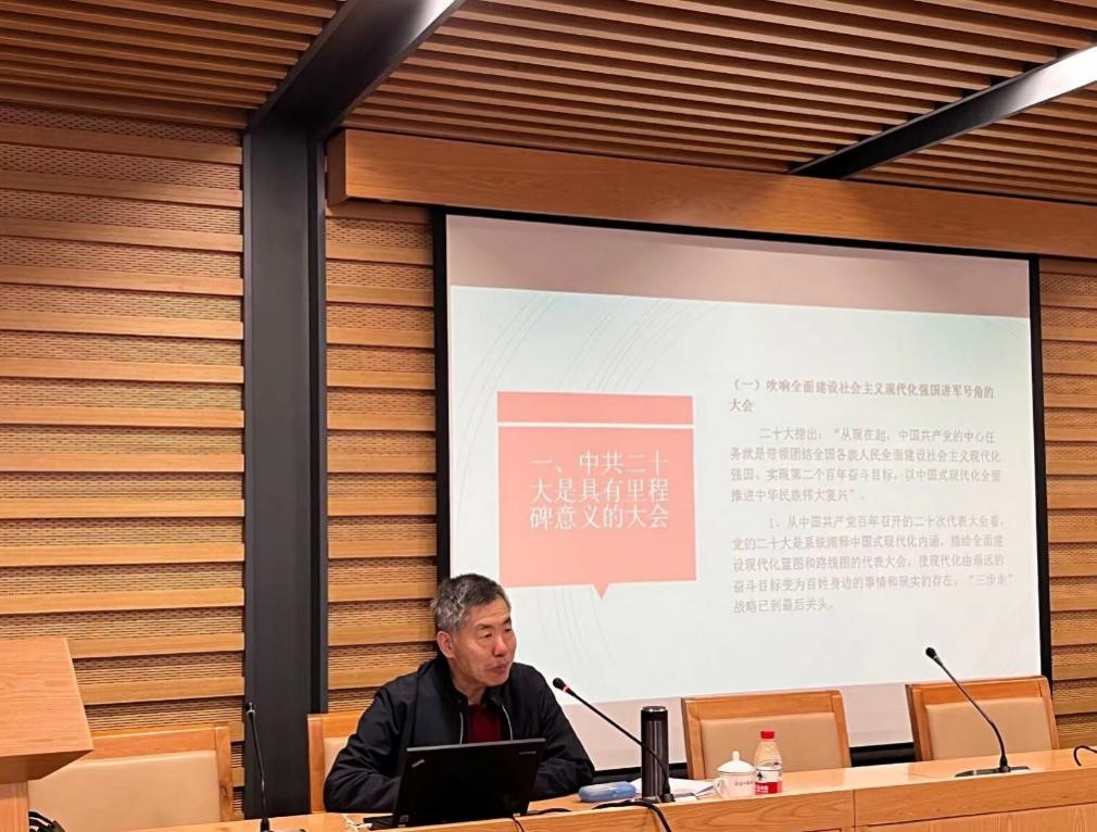 崔桂田教授在讲座中介绍和分析了党的二十大报告的文本架构和整体精神。他指出,党的二十大是具有里程碑意义的大会,是系统阐释了中国式现代化内涵、描绘全面建设现代化蓝图和路线图的代表大会,使现代化由遥远的奋斗目标变为百姓身边的事情和现实的存在,为21世纪科学社会主义注入新的内涵和活力,向世界政党展现出中国共产党的使命与担当。