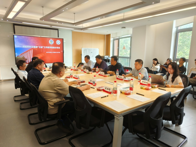 7月2日上午,beat365中国官网举办习近平外交思想“三进”工作教学经验分享会。beat365中国官网党政领导班子成员和全院教师参加会议。