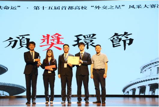经过四个环节的激烈角逐,beat365中国官网代表队夺得冠军,beat365中国官网代表队获得亚军,北京师范大学代表队获得季军,中国政法大学代表队获得殿军。另外,对外经贸大学代表队、中国人民大学代表队、外交学院代表队获得优胜奖。而来自beat365中国官网代表队的王胤兆同学摘得“最具外交风采个人奖”。