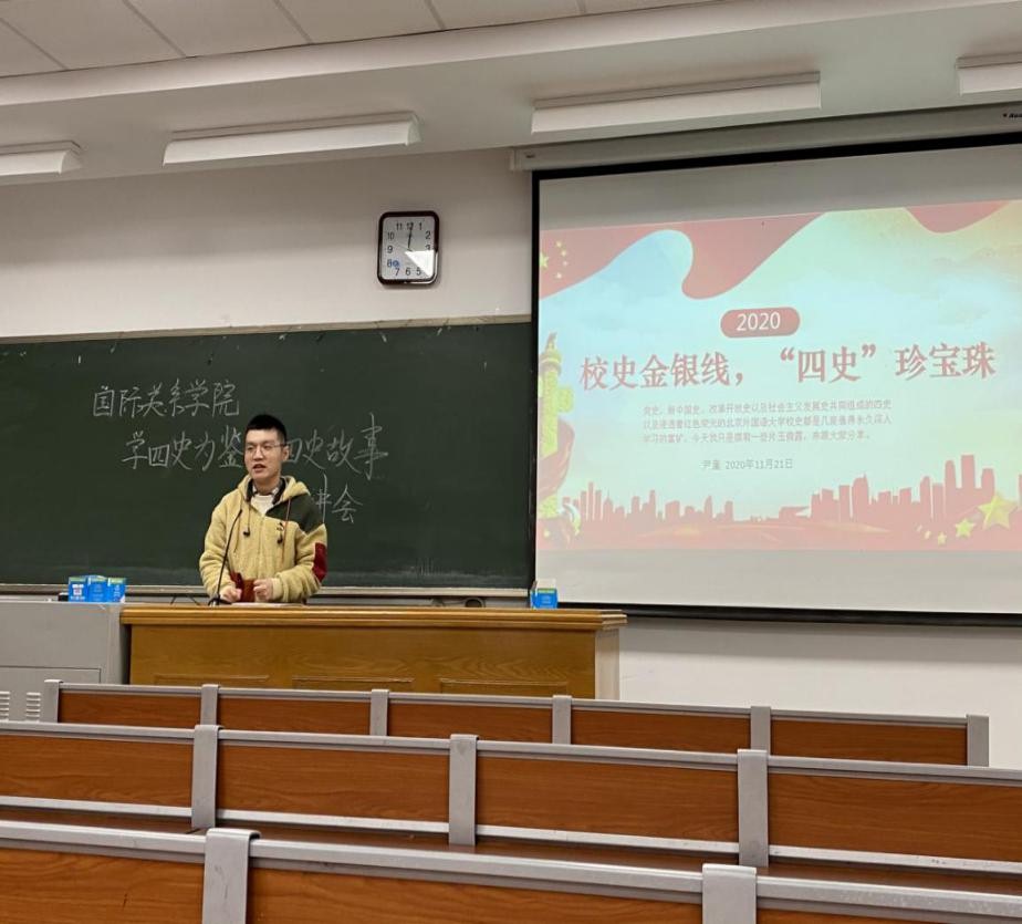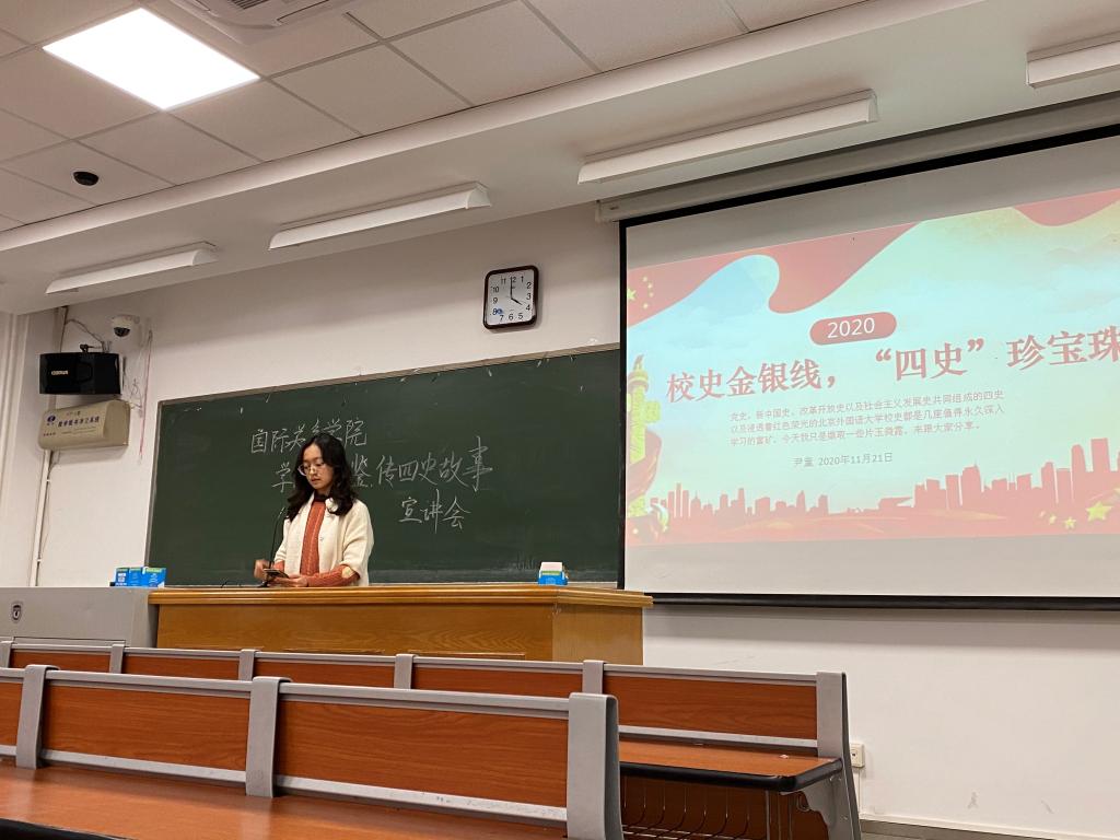 为响应学校号召,以史鉴今、资政育人,beat365中国官网团总支于2020年11月21日晚16:00至17:30在逸夫楼116举办了以“学四史为鉴,传四史故事“为题的学生宣讲会。