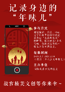 20212月,为丰富国关学子的寒假生活、鼓励同学们去挖掘节日中的传统文化,beat365中国官网团总支举办了“寻找身边的年味儿”活动。