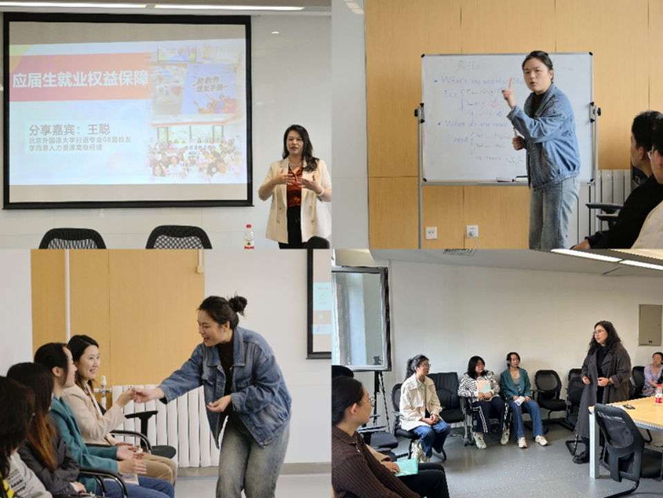活动正式开始,王聪老师用生动案例和法律条款讲解了应届生就业权益保障。具体讲解内容丰富,有“offer”和“三方协议”在就业过程中的重要性及注意事项,签订三方协议对双方的保障作用,强调了应届生身份的保护和利用,还提到了劳务派遣制度在中国的应用,包括临时工的误解、劳务派遣与同工同酬的规定,以及用人单位应承担的用工风险,还介绍了外包与派遣的区别。此外,还讲解了延迟退休、五险一金政策、北京的社保和医保制度、实习类型和劳动法试用期规定解析、薪资构成和谈判策略等就业须知。普及完基本的应届生就业权益保障,王聪老师与同学们交流互动,解答了同学们提出的问题。