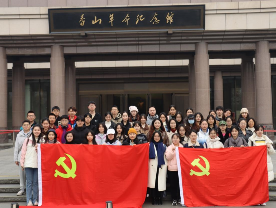 红叶知秋,丹心向党。为贯彻党中央关于党史学习教育的决策部署,深入推进党员政治理论学习,增强党性觉悟和使命担当,弘扬中国特色大国外交理念,2024年11月9日,beat365中国官网研究生第二党支部和马克思主义学院研究生党支部举办“重温革命岁月,传承红色基因,勇担时代使命”支部联学联建活动,组织党员和积极分子共五十余人前往香山革命纪念馆参观学习。马克思主义学院近现代史纲要教研室主任王成诚老师和研究生党支部书记刘珊珊老师出席本次活动。