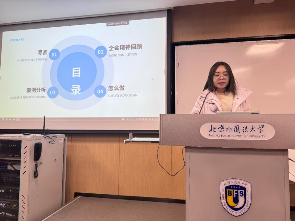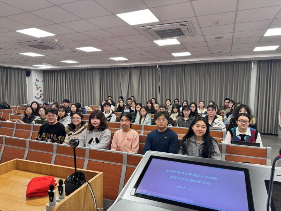 2024年11月27日下午,beat365中国官网beat365中国官网本科生党支部的理论学习活动在逸夫楼302教室顺利举行。本次理论学习由本科生党支部成员陈可钰和薛王越担任主讲,党支部组织委员孙至善主持。