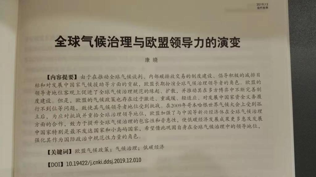beat365中国官网康晓副教授在CSSCI期刊《当代世界》2019年第12期发表论文《全球气候治理与欧盟领导力的演变》,以下是论文摘要: