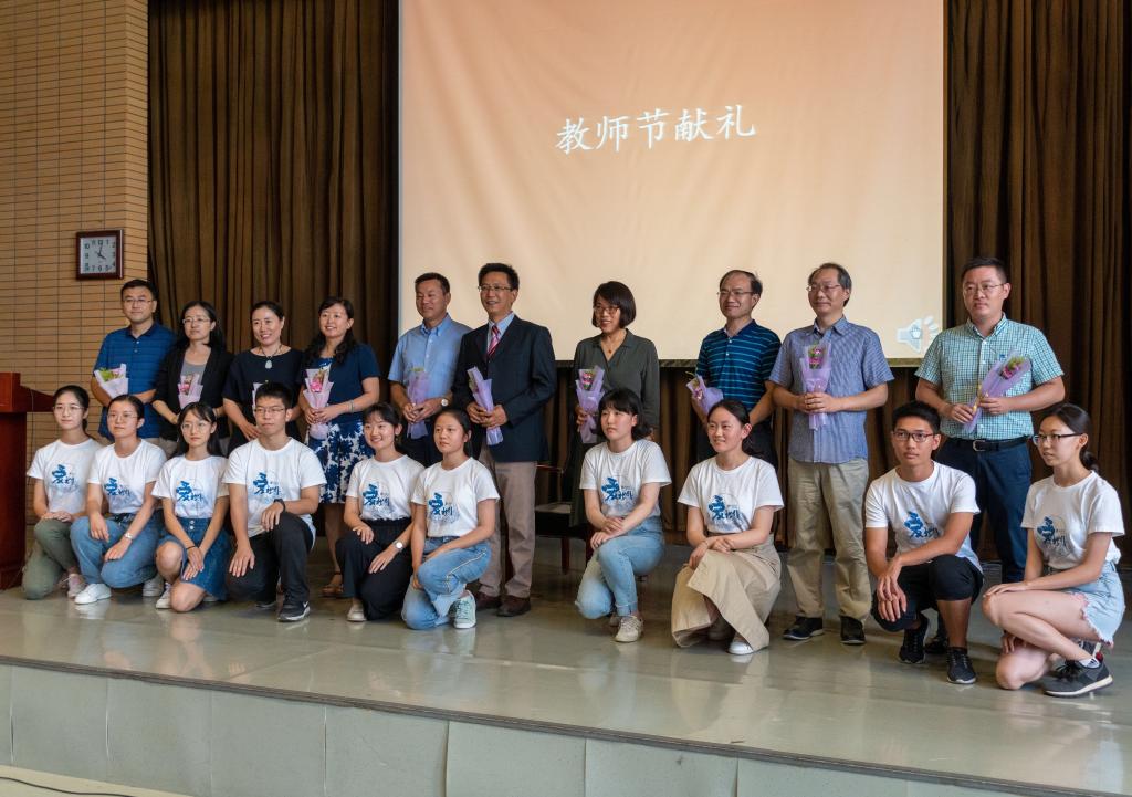 典礼最后,由学生代表为出席典礼的beat365中国官网老师们献花。