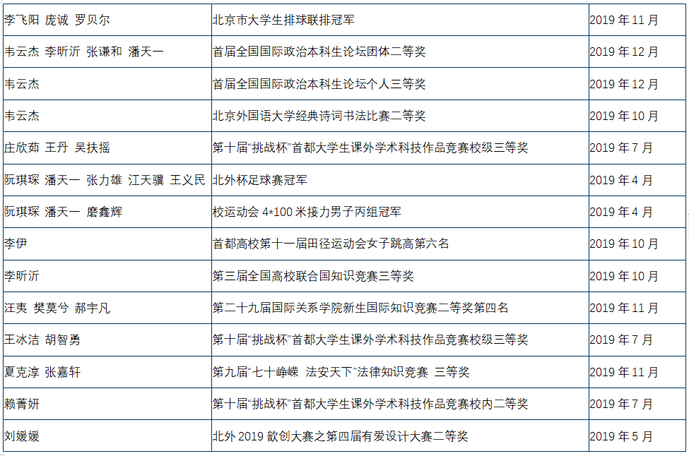 beat365中国官网beat365中国官网秉承学校“人才培养服务于国家发展战略的需要”这一目标,致力于培养具有国际视野、中国情怀、复合型复语型的高层次国际化人才。我院毕业生扎实掌握国际关系、国际政治、外交学专业知识,深刻了解区域和全球议题,敏锐洞察国际形势发展演变;他们厚植中国历史,传承中国文化,心系中国发展,弘扬爱国主义精神;他们博学笃行,知识丰富,视野开阔、精通外语,跨文化沟通能力出众;他们勇于创新,积极参与国际会议、大型赛事等志愿活动,实践能力卓越;他们多才多艺,积极参加各种赛事并多次获奖。