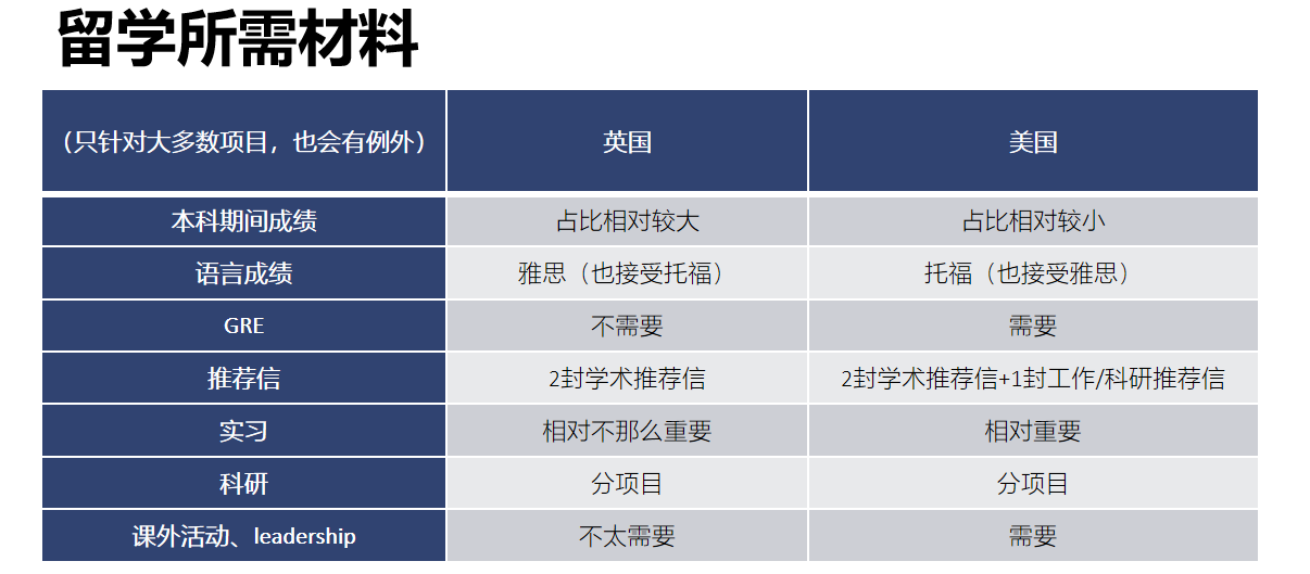 张煜昕首先介绍了关于国家、学校和专业选择时的经验,选国家要根据自身的兴趣、未来发展以及申请的复杂程度进行考虑,而学校和专业选择可以考虑自己未来的方向是就业还是学术,据此选择具体的学校和专业。她特别说道,真正重要的其实是“适不适合”,要靠预计自己在学校学到和经历到的东西,而不是只靠学校的名气。然后她具体对比分析了英美两国留学申请所需的材料不同。