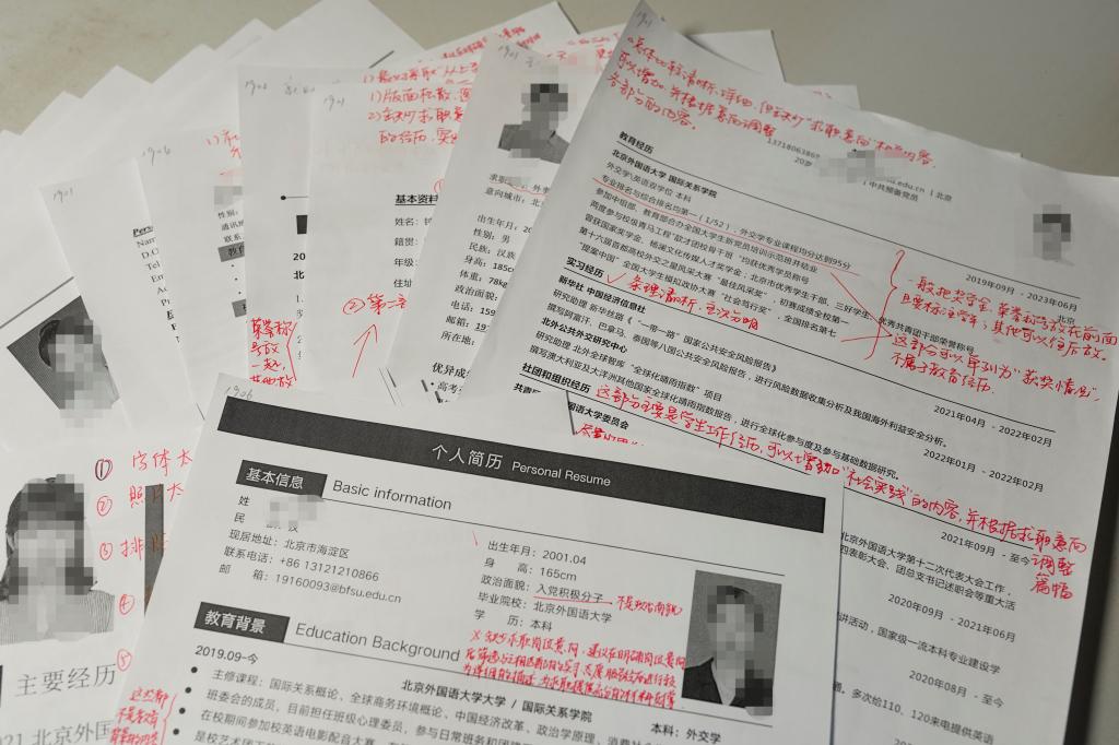 自国关“就业力”大赛系列活动开展以来,学院收到了同学们提交的四十余份简历,体现了同学们对简历指导的强烈需求。为了帮助同学们更好地提升简历写作水平,帮助同学们制作出属于自己的精彩简历,打造亮点突出、风格鲜明的个人名片,学院老师对同学们的简历进行了认真讨论和集体修改。
