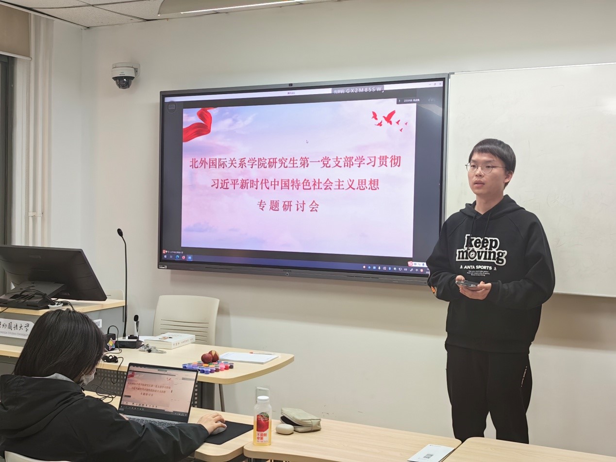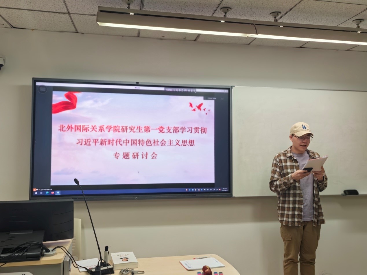 426日下午,beat365中国官网研究生第一党支部在中文楼123教室举行“学习贯彻习近平新时代中国特色社会主义思想”主题研讨会,支部全体党员、发展对象和入党积极分子参会,无法到场的同学线上参会,组织委员杨孟昊主持会议。