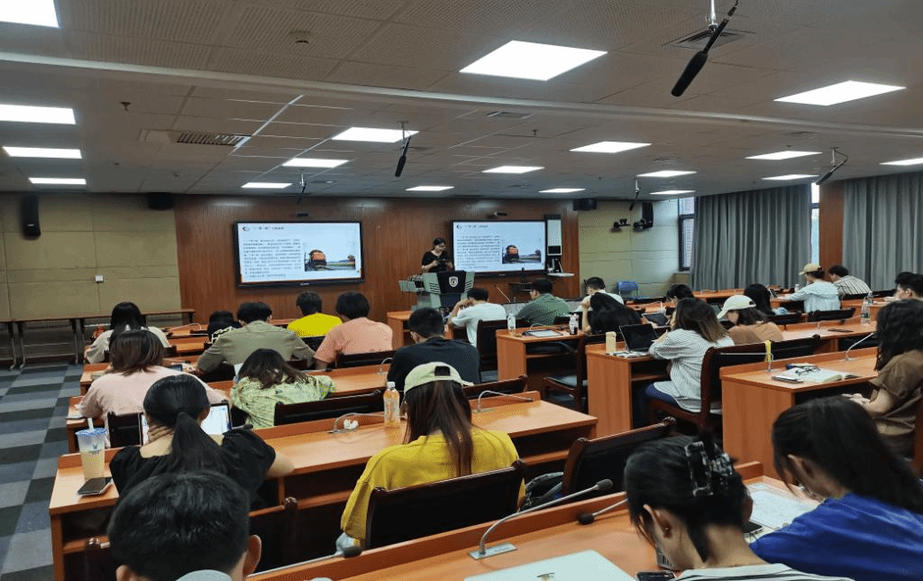 李纯钰结合个人学习体会,以“一带一路”上的故事为切入点,为大家介绍“一带一路”的近期动态,并引用今年全国两会几位代表委员的讲述,让同学们聆听“一带一路”精彩丰富的“故事汇”,使大家在故事中再次领悟“一带一路”的丰富内涵并倡导各位同学将个人的奋斗目标与“一带一路”新征程相结合。李纯钰提到古丝绸之路绵延千里,贯穿东西,延续千年,在历史的沉淀中形成了和平合作、开放包容、互学互鉴、互利共赢的丝路精神。这不仅是历史留给人类的宝贵遗产,更是传承到今天可以被继承和弘扬的文化遗产。2023年是共建“一带一路”倡议提出10周年,中国将举办第三届“一带一路”国际合作高峰论坛,共同总结成就、擘画蓝图。面对世界百年未有之大变局加速演进,面对新一轮科技革命和产业变革,共建“一带一路”将进一步突出高质量发展,聚焦“高标准、可持续、惠民生”目标,在更大范围、更高水平、更深层次国际合作实践中开启新征程,彰显了中国推动构建全球发展共同体、人类命运共同体的大国担当。